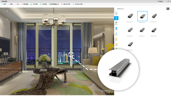 門窗效果設(shè)計(jì)好后,可以切換不同場(chǎng)景來給客戶體驗(yàn)不同效果,讓客戶更能選出適合自己的門窗